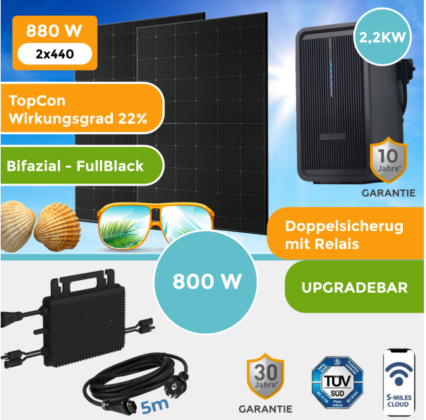 Balkonkraftwerk Komplettset 820Watt mit 2.2 kW Speicher